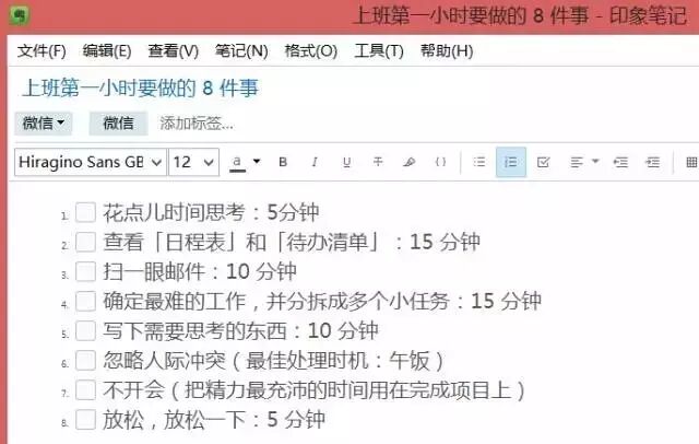 应该努力把你的注意力集中在当天的重要事项中。可以先列一个待办事项清单,然后找出里面的关键少数工作,当你找出完成1、2件就能完成一天中60%或80%的任务,把所有的注意力都在集中这几项重要任务上。学会为紧要的事情腾出时间,对其它事情暂时说“不”或者拖延过去。