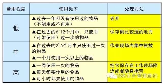 把“真正需要” 和“确实不要”的物品分开,避免不要品和必要品的混乱,使我们不用浪费时间寻找“不要品”占用了许多空间,所以不要品坚决扔掉,腾出“空间”来整顿必要品。